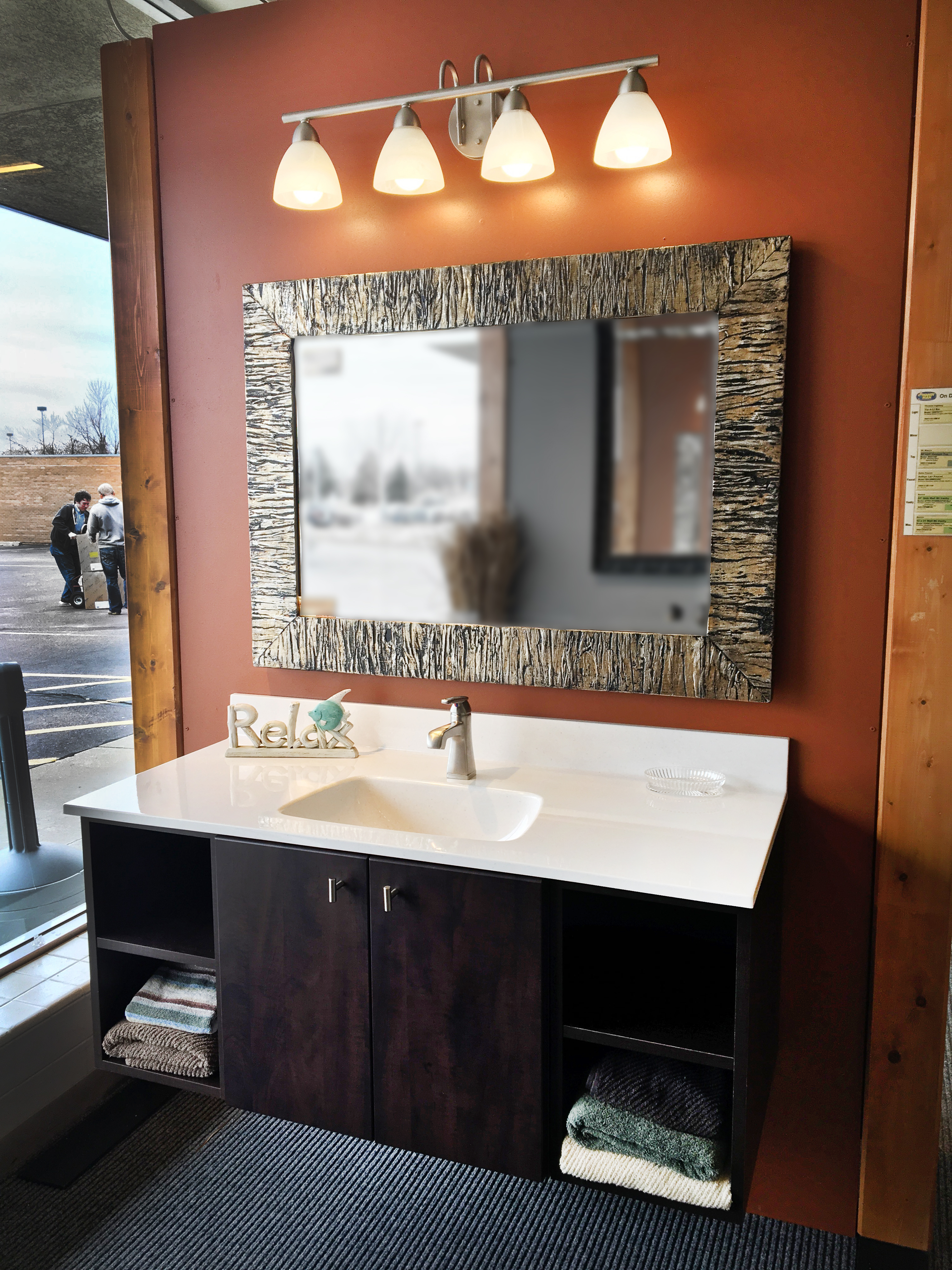 The most visible grime can be found on the vanity and sink. Like the toilet, consider installing a wall-mounted vanity. The floor is much easier to clean when there aren’t corners to sweep around. You can also purchase a wall-mounted faucet as well. The perfect combination is a wall-mounted vanity, wall-mounted faucet, and a single-piece Onyx vanity top. Instead of a countertop with a separate sink, it is one seamless piece. This makes cleaning a breeze. When the faucet is mounted, you can simply wipe down the whole countertop and sink in one smooth move. If you don’t like the look of a wall-mounted faucet, another germ-free option is to install a Delta Touch faucet. You can simply tap the faucet with your forearm to turn on the water and not have to touch the handles.
